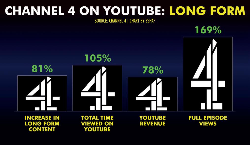 I can offer numerous other examples: Saturday Night Live is watched by far more people on YouTube than on NBC. When CBC posted hundreds of their premium long-form TV episodes on their YouTube channels, they more than doubled viewing on those channels, increased their YouTube revenues by 70%, and found entirely new audiences, two generations younger than their Broadcast viewership and a generation younger than the CBC streaming app. Channel 4 executed a very similar strategy, with very similar results.