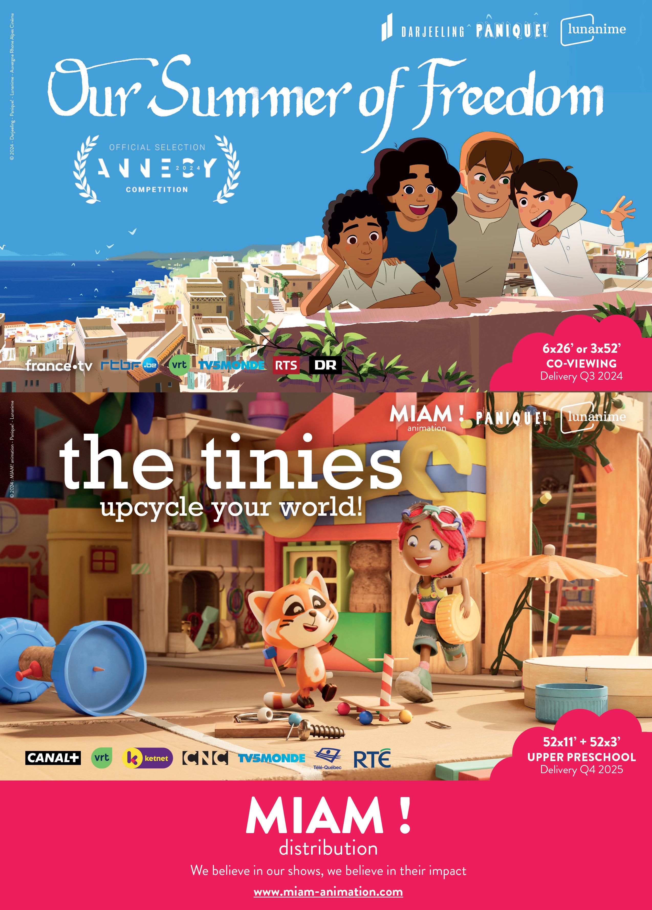 MIAM! Distribution is bringing "Our Summer of Freedom"to MIFA in competition at the Annecy Festival. Darjeeling produces the show in a co-production with Belgium's Panique!, Lunanime, and broadcasters RTBF and VRT. "Five European broadcasters are already on board: RTBF, VRT, France Télévisions DR and RTS, as well as TV5 monde," Mouchez mentioned. "The show is about universal themes. It explores how children can transcend community differences, advocating for justice and understanding across communities. The series nurtures a dialogue across generations, ensuring that history is not just what we learned from books but shared within families and schools, shaping our collective future," Mouchez concluded.