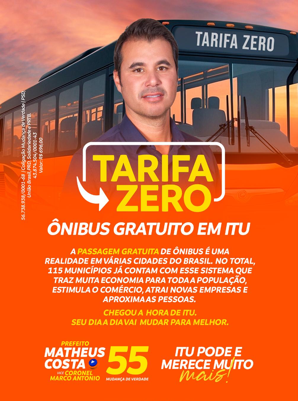 A Prefeitura de Itu informa que no dia 06 de outubro, data da eleição municipal, o transporte público irá operar de forma gratuita na cidade. O objetivo é garantir que todos os eleitores, independentemente de sua condição financeira ou localização geográfica, tenham a oportunidade de exercer seu direito ao voto.