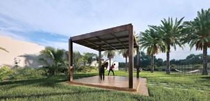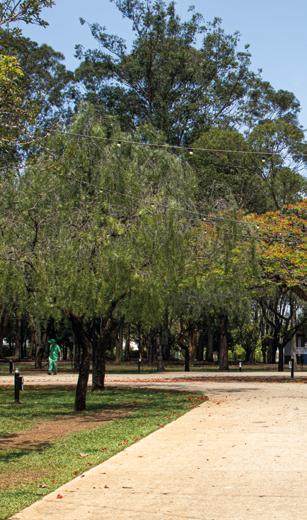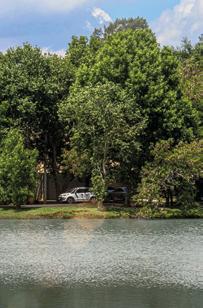 cisava refletir a essência do condomínio. Ela resgata a memória da antiga olaria da Fazenda Lago Azul e da terra vermelha característica da região; elementos que marcaram a paisagem original do local.