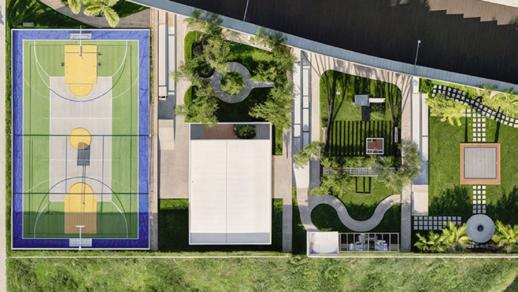 O complexo também ganhará um eixo de circulação contínuo que atravessa toda a área de lazer e permite visão ampla das quadras, academia, piscina e demais espaços. A proposta elimina percursos confusos e melhora a organização geral, criando um fluxo mais funcional e intuitivo para moradores e visitantes.