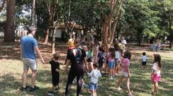 Em abril, o Bosque contou a tradicional Caçada aos Ovos que reuniu cerca de 50 crianças em uma programação cheia de alegria, movimento e encantamento.