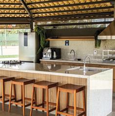 Na parte social e de lazer, o condomínio conta com quadras de tênis, beach tennis, poliesportiva, campo de futebol com grama sintética, playgrounds, vários lagos, bosque com circuito para caminhada e aparelhos de ginástica ao ar livre. Tudo em uma estrutura bem cuidada, onde a rotina dos moradores flui entre o lar, o lazer e a convivência com a natureza, com serviços de manutenção integrada (jardinagem, zeladoria, limpeza de vias) e uma comunidade que valoriza o verde, a harmonia espacial e o convívio social.