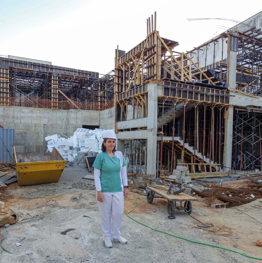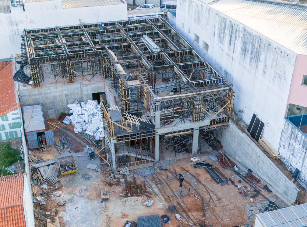 As obras já avançaram consideravelmente e são visíveis a partir da rodovia, mostrando o ritmo acelerado do empreendimento e sua presença marcante na paisagem da região.
