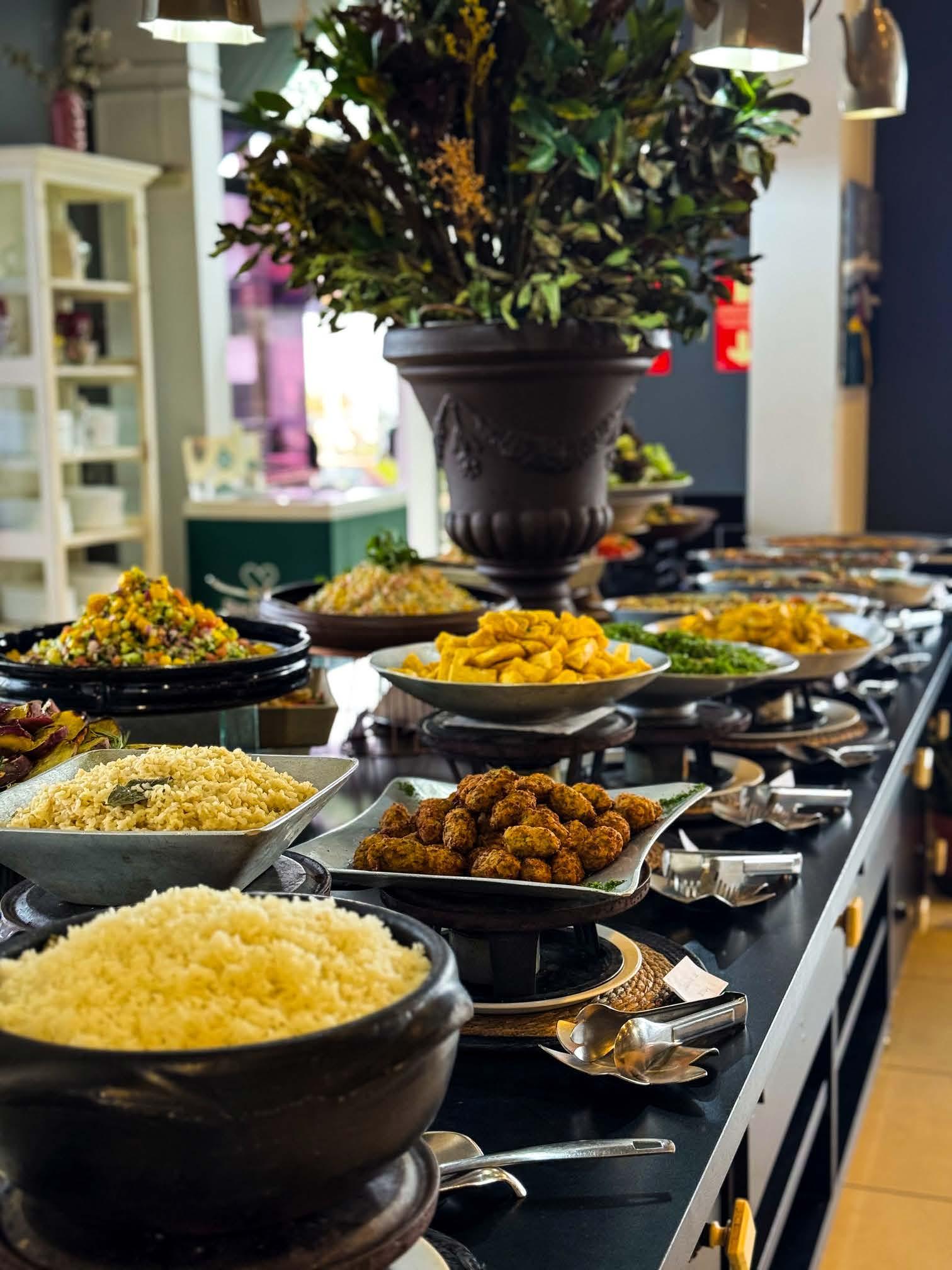 l o c a l . A v a r i e d a d e d o b u f f e t q u e s e u p a l a d a r p r e c i s a e s t á a q u i n o S a n t a F é .