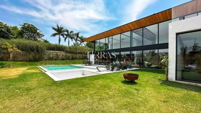 Casa moderna no Terras de São José II, em localização privilegiada e voltada para a face norte, com vista permanente para área verde Em terreno de 2.160 m² e 404 m² de construção, oferece 5 suítes, home office, cinema, varanda gourmet integrada, piscina, quadrinha de basquete e espaço para playground ou beach tennis Conta com cozinha Kitchens equipada, marcenaria planejada, esquadrias alemãs com isolamento, aquecimento solar, reservatório de 10 000 litros, arcondicionado em todos os ambientes e mobiliário assinado em estilo mid-century modern