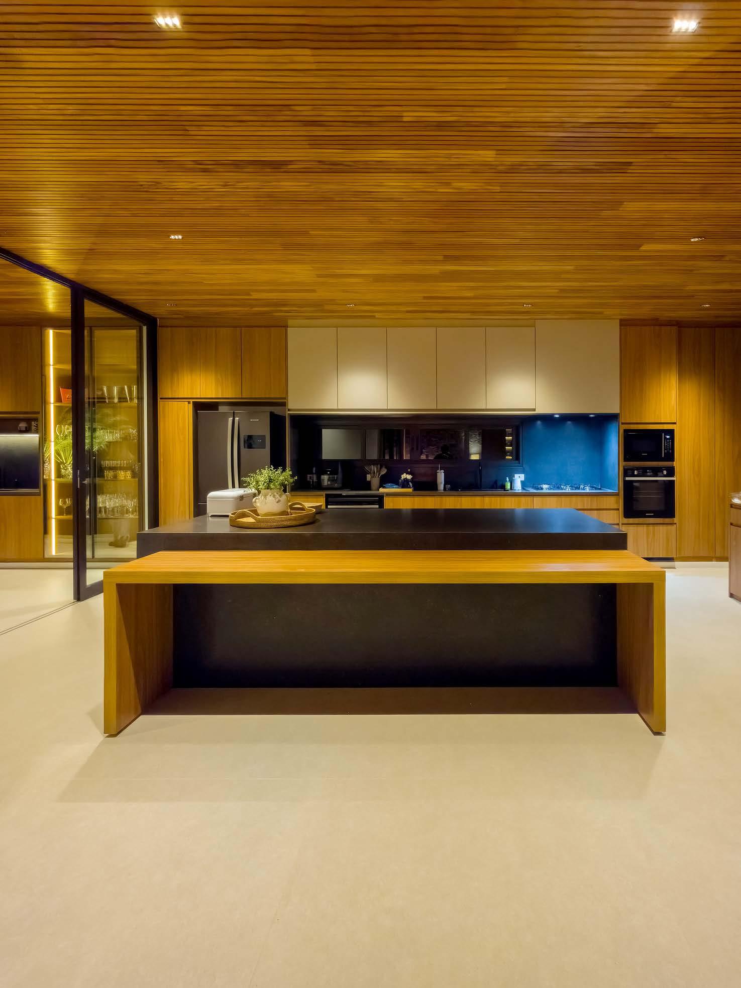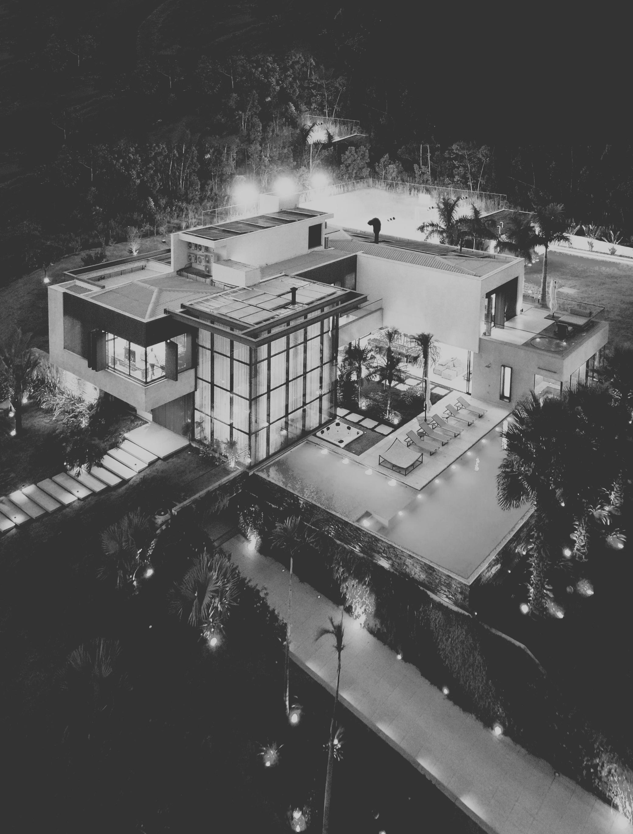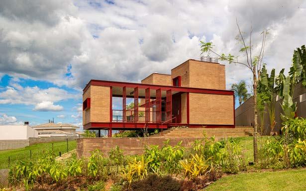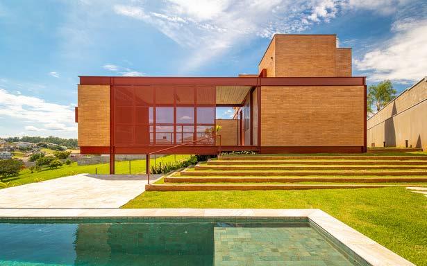 Para garantir estabilidade em um terreno com grandes desníveis, a Casa Itatiba utiliza estruturas metálicas que permitem vencer vãos amplos com apoios mais esbeltos e discretos Essa solução assegura a sustentação da edificação de forma leve e eficiente, valoriza as vistas e se adapt elho à to og fi lé de e iti e e ão i rápida e precisa da obra