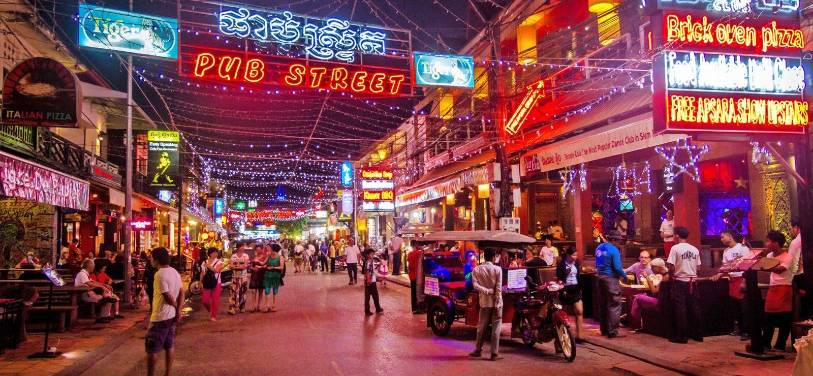 plia variedad de souvenirs a muy buen precio en los distintos mercados de la ciudad. Existen varias agencias que te ofrecen tours exprés a atracciones cercanas de la ciudad y con precios muy justos, yo hice la excursión a al lago Ton lé Sap, el más grande del sudeste y los pueblos flotantes cercanos. Por la noche, no puedes dejar de tomar una copa en el Pub Street, una famosa avenida llena de bares y restaurantes. Si eres de espíritu aventurero, puedes intentar comer una brocheta de escorpión o cucaracha.