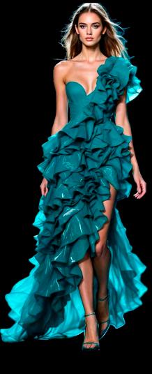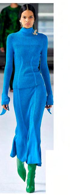 Un azul refrescante, sofisticado y versátil que dominó casas como Fendi y Jil Sander. Se mueve entre tonos turquesa y azules profundos, ideal para prendas fluidas y materiales brillantes.