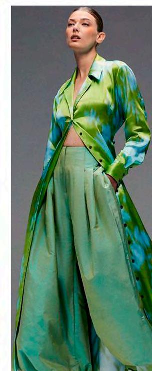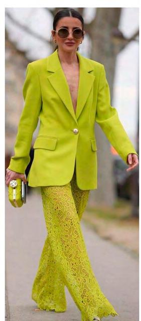 Los verdes intensos, eléctricos o suaves encarnan salud, vitalidad y una vibra futurista que combina naturaleza y escapismo digital. Estos tonos aparecen tanto en looks casuales como en athleisure.