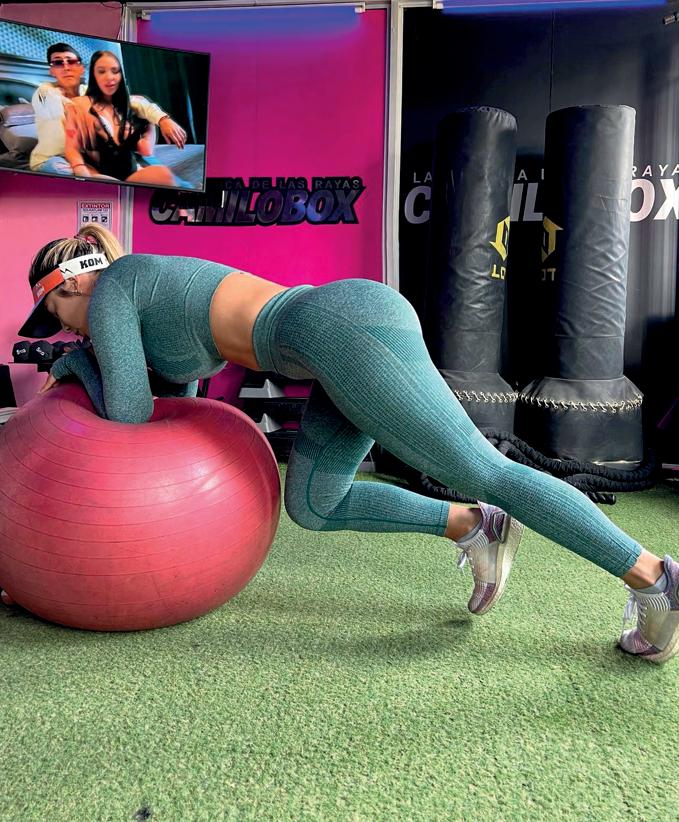 Antes de empezar toma nota de cómo subirte a la pelota. La mejor manera es colocar las rodillas en el suelo, tumbarte sobre la pelota e ir avanzando con las manos, como si caminaras, hasta colocarte en la posición inicial.