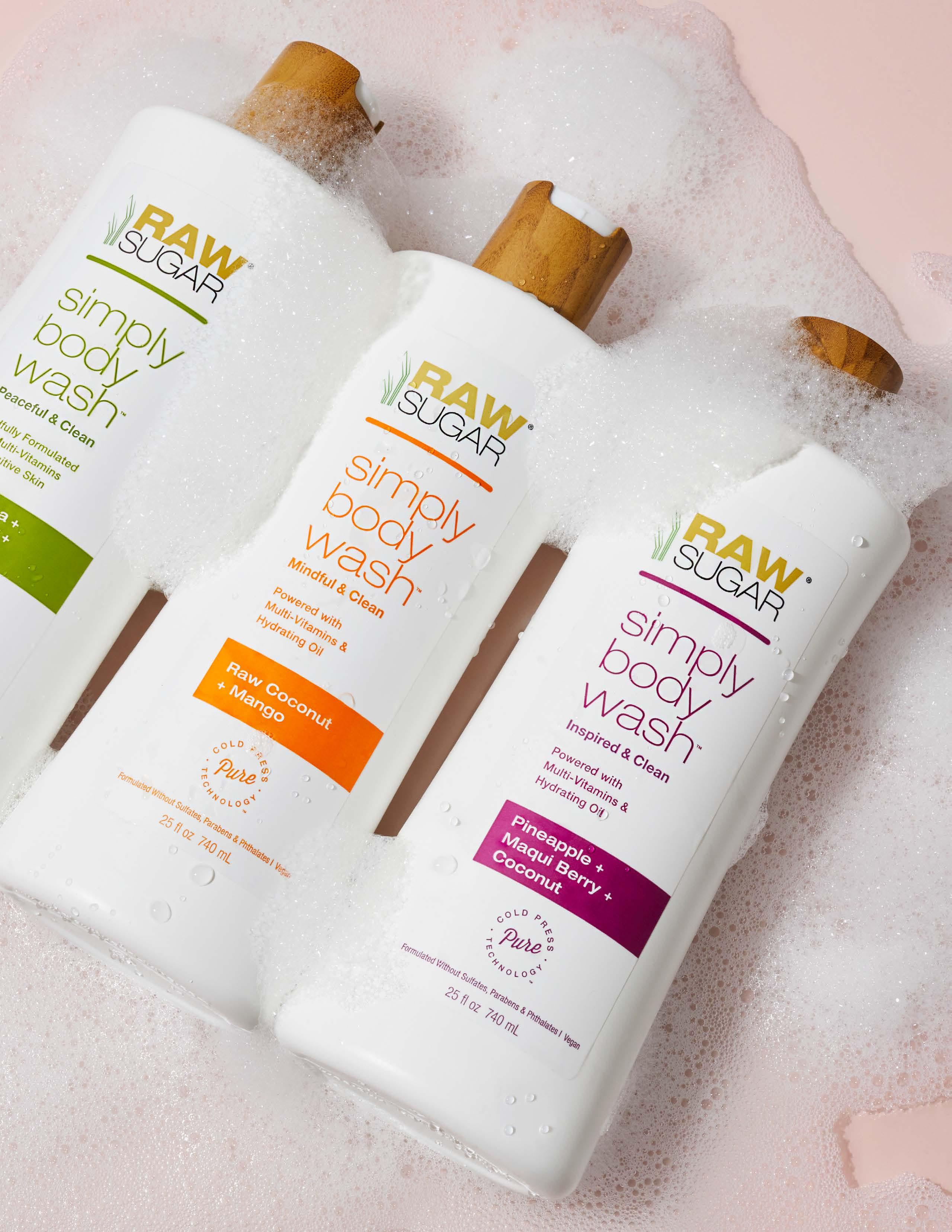 Los Simply Body Wash de Raw Sugar son el producto ideal para eliminar lo que no necesitas. Lo mejor es que sus ingredientes naturales dejarán tu piel renovada y fresca.