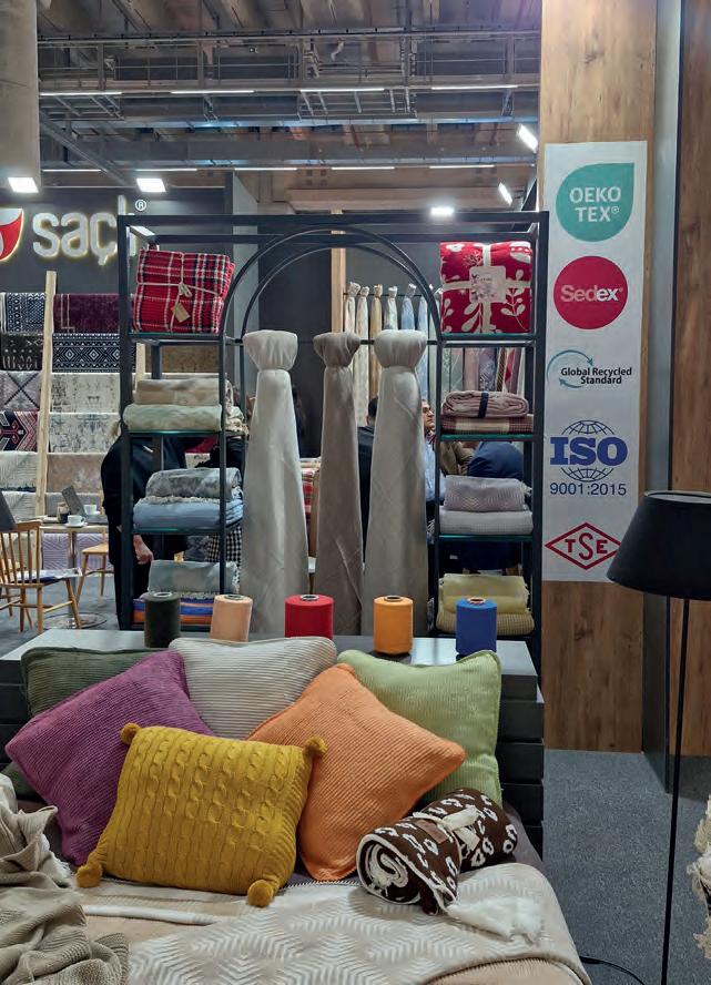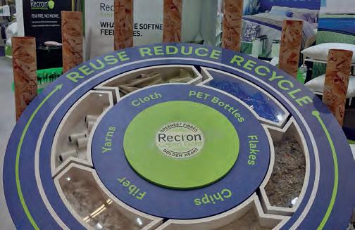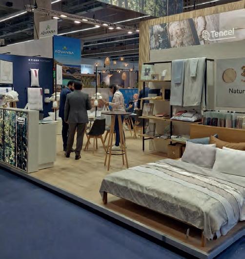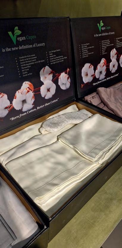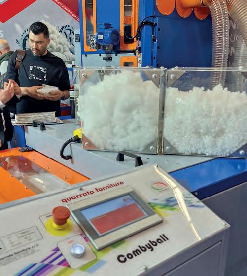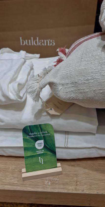 Por meio de visitas guiadas, pudemos conhecer estandes que oferecem produtos acabados ou maquinaria de apelo sustentável para o setor têxtil. Entre elas, encontramos não só máquinas de dobrar e embalar, mas também máquinas para colocar o enchimento de edredons, almofadas, para enchimento com fibras recicladas e de recheios orgânicos, como penas. Como destaques, vimos colchões viscoelásticos, moldados no formato final e sem cortes ou colas; e o aumento do uso de fibras vegetais orgânicas, como a do cânhamo para lençóis, entre muitos outros.