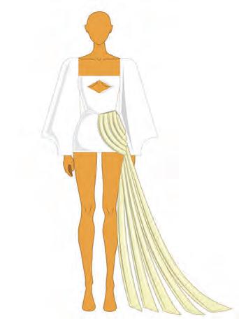 O criativo utiliza uma variedade de tecidos sustentáveis, incluindo fibras naturais, algodão, paetês ecológicos da Moltec, com produção 100% manual e descarte zero, além de miçangas de madeira e canutilhos de vidro. A paleta de cores transita entre azul noturno, azul céu, amarelo, off-white, marrom ouro e bege natural, representando diferentes aspectos da liberdade e prosperidade, temas centrais da coleção.