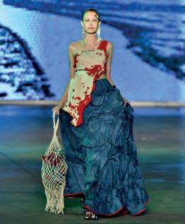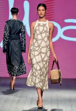 anos 1980. Entre peças oversized e fluidas - jaquetas, blazers, bomber jackets e vestidos - as intervenções artísticas incluíam pinturas manuais, renda de bilro e crochê, celebrando o artesanato brasileiro. A MOA, de Moema Cardoso, apresentou a coleção Varanda, que convida ao aconchego e desaceleração. Com looks que trazem a rusticidade do crochê e texturas de fios, a coleção explorou formas confortáveis e soltas, representando os cantos de descanso de uma varanda. As peças, que inicialmente eram bolsas e agora incluem saias e vestidos, celebram o artesanato como linguagem de memória e conexão. Detalhe curioso: a pernambucana é formada em Administração e Arquitetura, e é uma vidreira premiada, tendo decidido criar sua marca própria em 2019, aos 50 anos, inicialmente com bolsas autorais que mesclam técnicas como cestaria, macramê, crochê e tricô.
