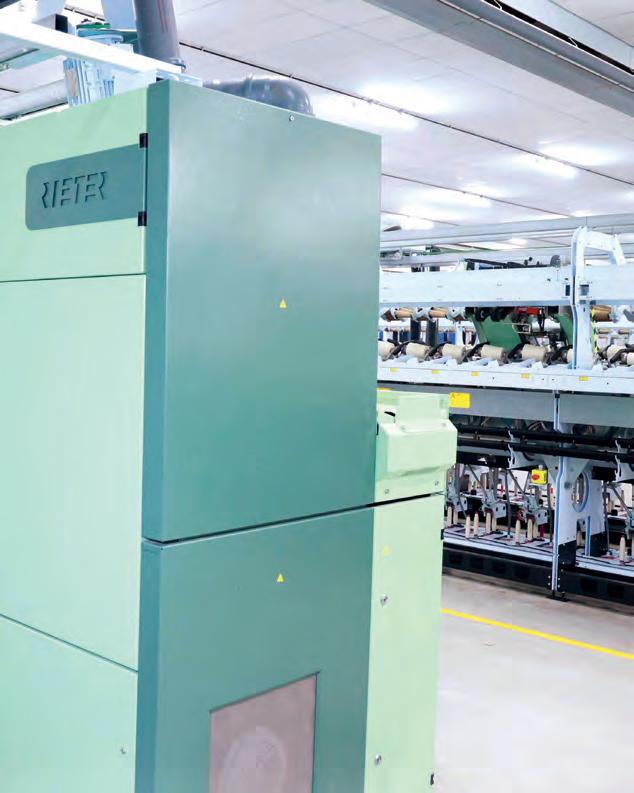 Além disso, o sistema Multilink proporciona grandes vantagens em economia de mão de obra, devido às bobinadeiras mais longas e ao layout otimizado da fábrica. Em vez de quatro operadores, agora são necessários apenas dois para gerenciar as tarefas das oito bobinadeiras Multilink. Isso significa que um operador pode manusear quatro máquinas Autoconer (produção de 7.296 fusos de filatório de anel), o que se traduz em uma duplicação de sua área de trabalho.