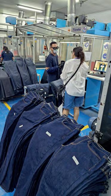 Os visitantes também puderam conhecer detalhes do desenvolvimento do jeans, desde a escolha das fibras até a implementação de tecnologias sustentáveis. Essa transparência reforça o posicionamento da marca como pioneira em soluções ecologicamente responsáveis.