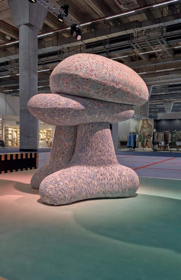 Durante a Heimtextil deste ano, uma grande hospitalidade imersiva de design têxtil foi assinada por Patricia Urquiola, designer e arquiteta espanhola, que apresentou uma incrível instalação de 650 metros quadrados no coração do Hall 12. Batizada de “among us”, a instalação criou no ambiente uma atmosfera têxtil de conceito, onde foram feitas conversas sobre sustentabilidade, convivência e o brilho do design.