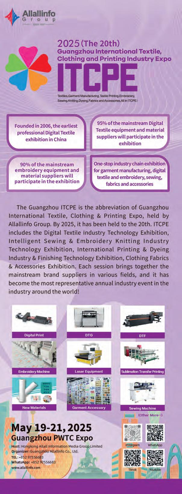 Dando sequência à programação, de 17 a 20 de março, também no Expo Center Norte, acontece a FESPA Digital Printing 2025, principal feira de impressão digital têxtil do país. O evento é essencial para empresas que utilizam ou pretendem investir em tecnologias como sublimação, DTF e DTG, abrangendo desde a personalização até produções industriais. Em abril, de 22 a 25, será realizada a Tecnotêxtil Brasil, no espaço FIDAM - Feira Industrial de Americana, em Americana, no interior paulista. Em sua 6ª edição, o evento