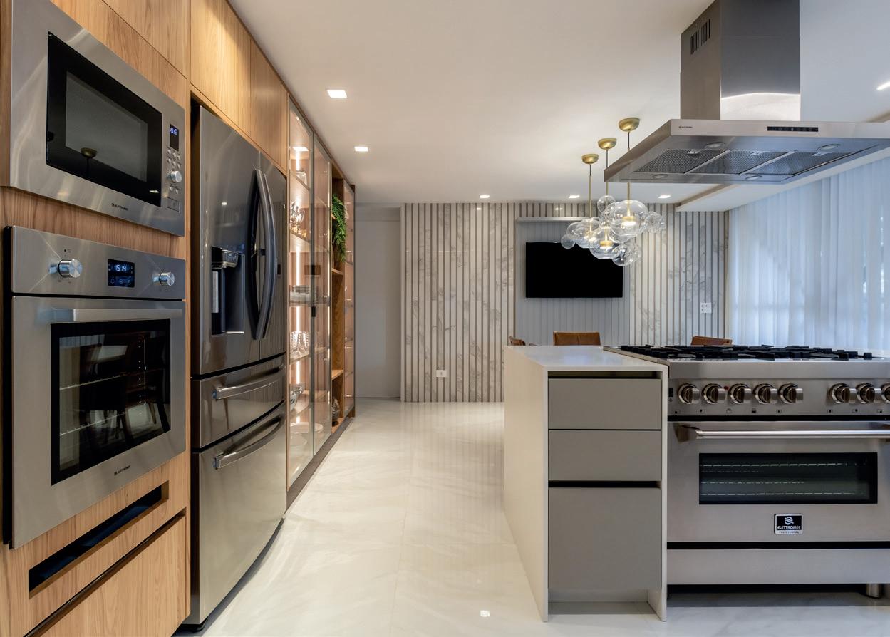 Buscando facilitar o dia a dia dos moradores, o maior desafio ficou por conta da otimização do espaço disponível. Dessa forma, o layout é o grande destaque do projeto, por oferecer uma série de comodidades de forma leve e fluida. Além da marcenaria, executada com muito apuro técnico, a especificação de equipamentos inteligentes contribuiu para ampliar o conforto físico e visual em todos os ambientes.