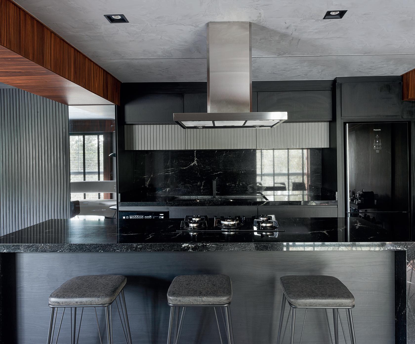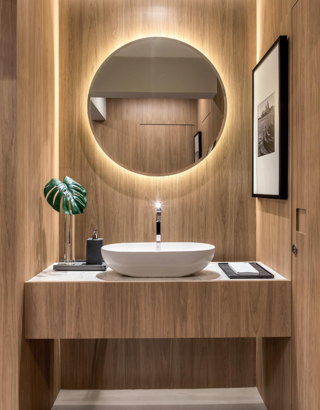 03. Os painéis em madeira ampliam a sensação de acolhimento e sofis ticação.
