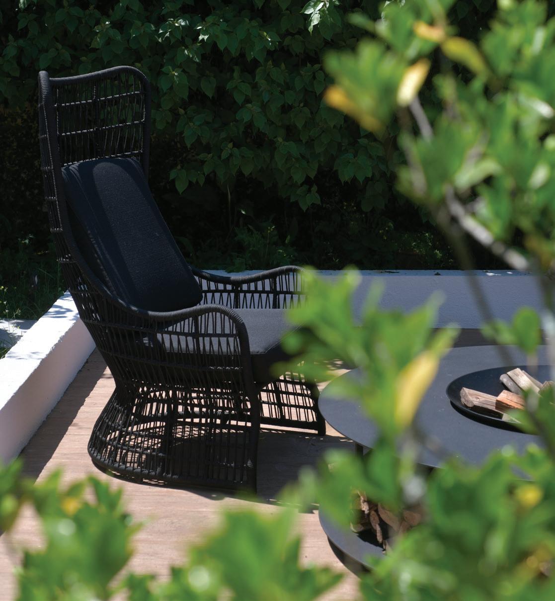 e fibra, presentes em luminárias, tapetes e mobiliário, que adicionam sofisticação e dão um toque descontraído e praiano. Peças assinadas, como o banco em formato de golfinho, conferem charme à sala de estar.