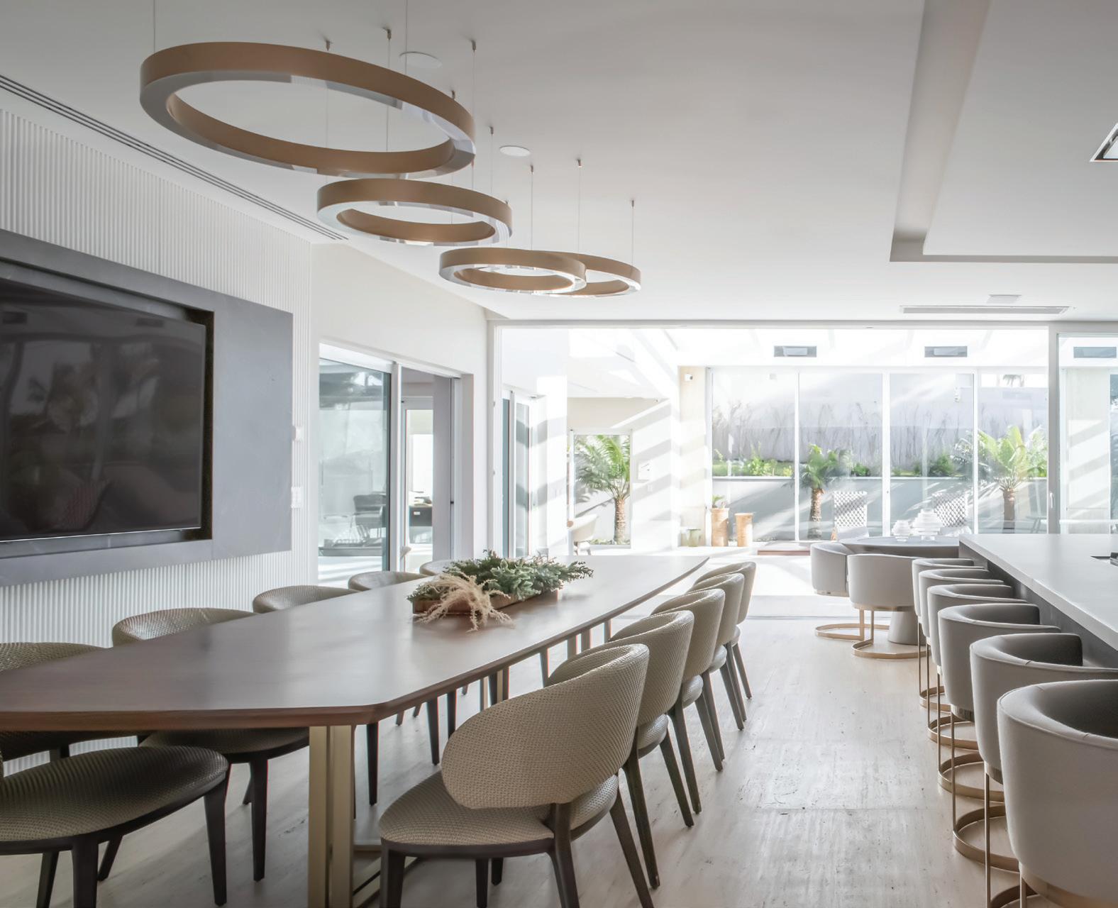 1. A iluminação foi estudada e posicionada de forma a preencher os espaços que a luz do sol não alcança, possibilitando a criação de diversas cenas para todos os tipos de encontros.