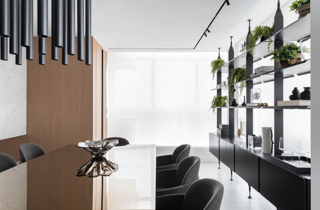 6. O projeto apresenta uma fusão requintada de elementos contemporâneos com uma estética industrial e monocromática.