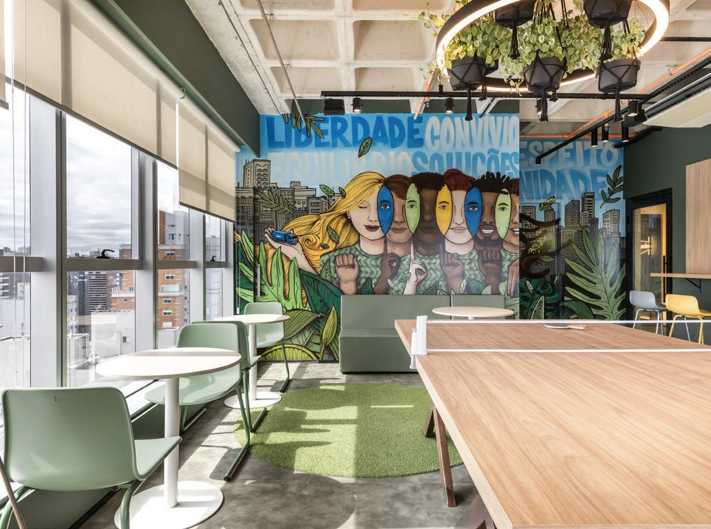 1. As cores harmoniosas e a presença da madeira na recepção trazem um ambiente acolhedor e vibrante.