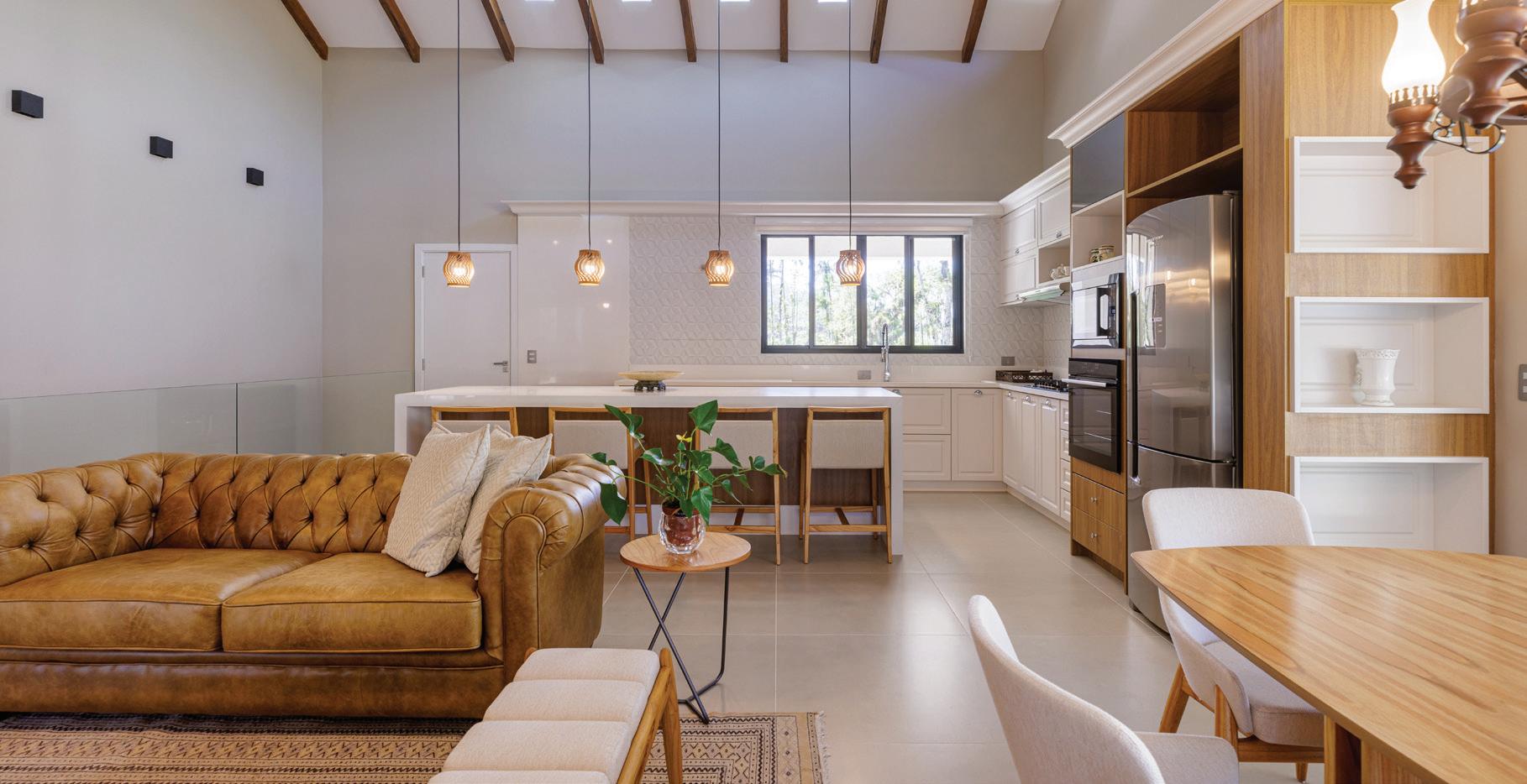 tes e terrosas na área gourmet, criando ambientes aconchegantes e convidativos.