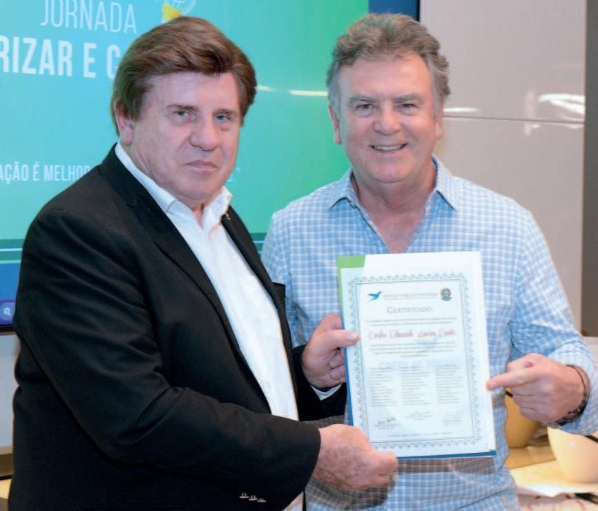 Na data em que se comemorou o Dia do Corretor de Imóveis, o presidente da Confraria Imobiliária de Curitiba, Carlos Eduardo Canto, recebeu um diploma das mãos de Luiz Celso Castegnaro, presidente do CRECI-PR, referente aos relevantes serviços prestados ao setor em quase 50 anos de atuação no mercado imobiliário curitibano.