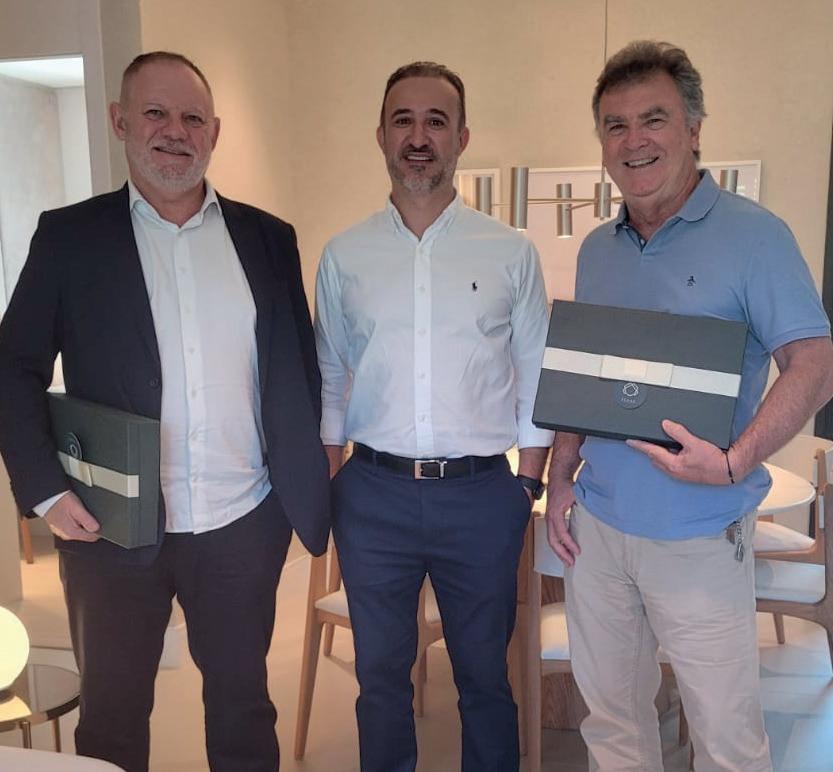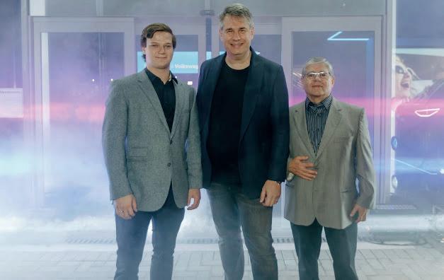 Na noite da reabertura, Alexandre Chiuratto Cruz, presidente do Grupo Luson, Ciro Possobon, CEO da VW Brasil, e Edinelson Góes, diretor geral da Luson.