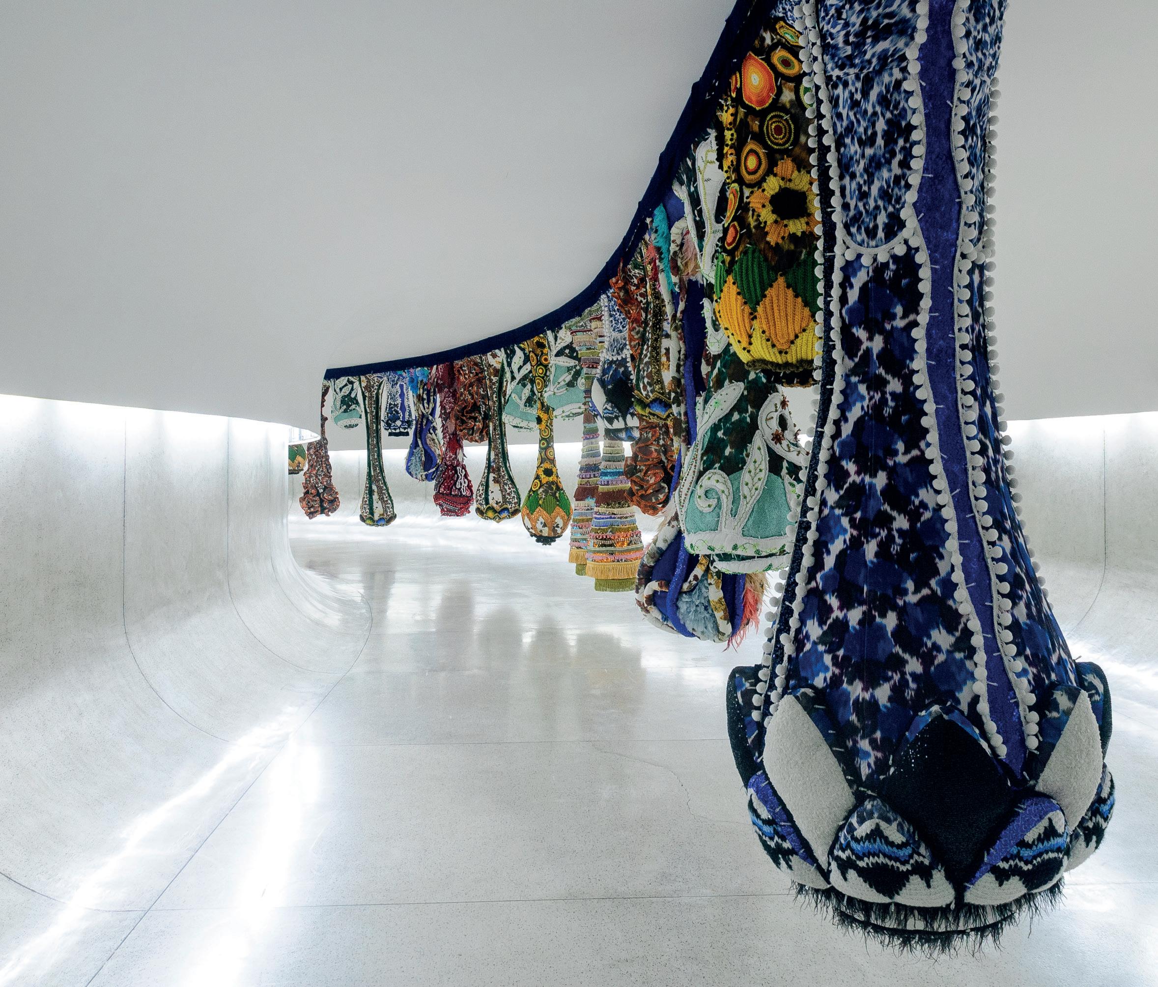 Em 2023, a artista desembarcou em Curitiba e encantou os visitantes do Museu Oscar Niemeyer com a exposição Extravagâncias . E, agora, em março de 2024, Joana conquista outro feito inédito: uma superescultura brilhante, de 45 metros de extensão, abre o percurso que dá caminho para o Olho — espaço em que foi instalada a primeira parte da mostra.