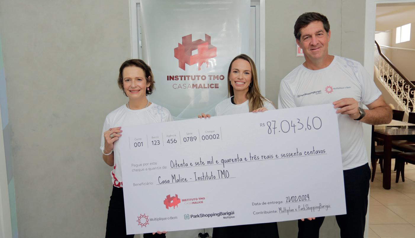 A Multiplan e o ParkShoppingBarigüi doaram cerca de R$ 90 mil para o Instituto TMO, entidade beneficente de acolhimento a transplantados de medula óssea do Hospital de Clínicas de Curitiba. O valor faz parte da iniciativa nacional da companhia, “Arrecadômetro de Natal”, que converteu cada nota fiscal cadastrada na promoção de Natal em doações financeiras para diversas entidades pelo Brasil.