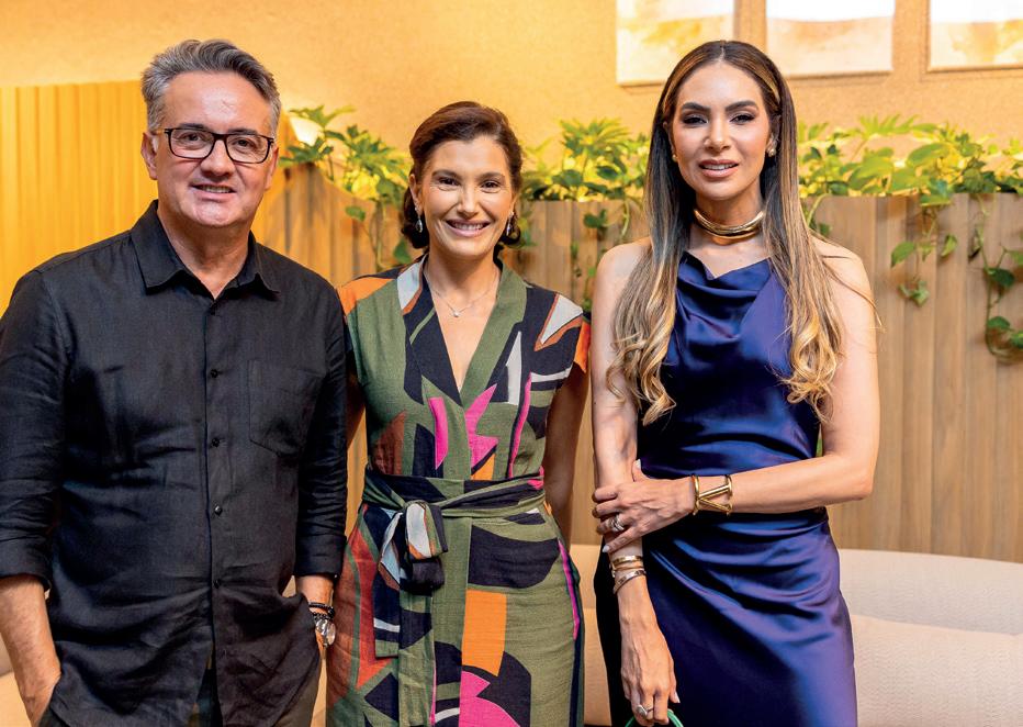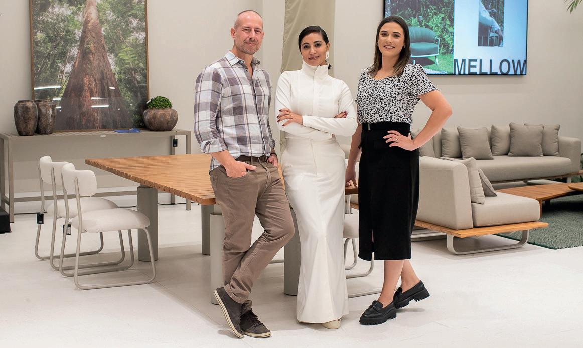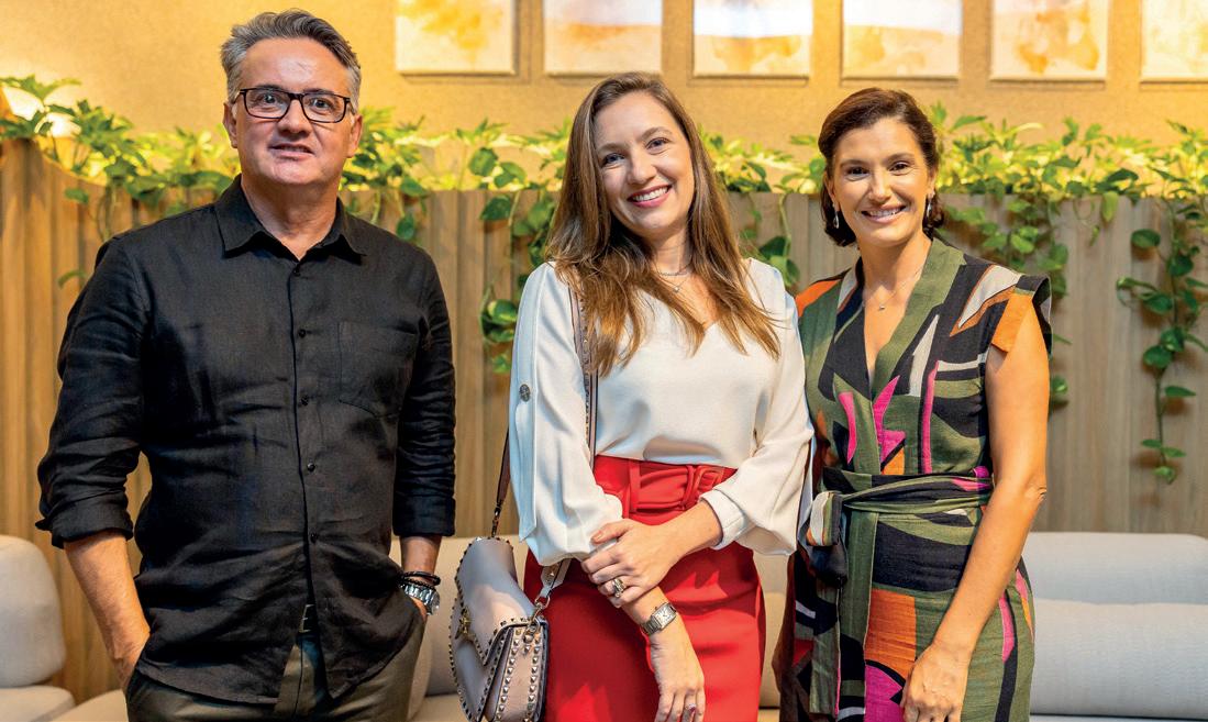O arquiteto Glei Tomazi com a designer Roberta Banqueri e a sócia da loja, Amanda Schroch.