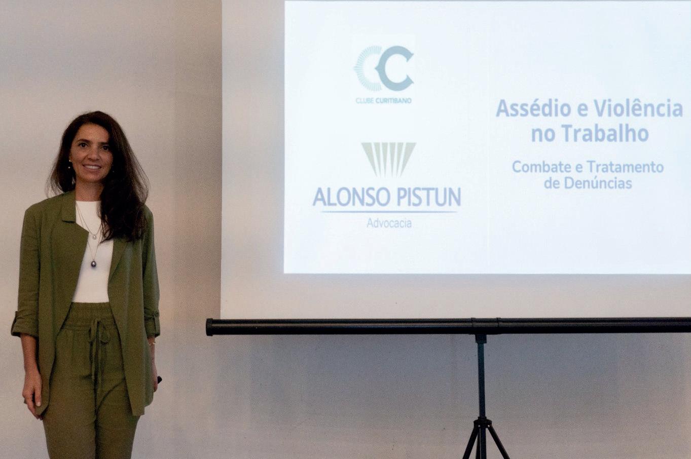 O Clube Curitibano realizou para os funcionários e líderes a palestra "Assédio e Violência no Trabalho - Combate, Tratamento e Denúncias". A conversa foi conduzida por Izabella Alonso Soares, advogada da Alonso Pistun Advocacia, em conjunto com suas sócias, Juliana Pistun Montagna e Maria Victoria Rielli Machado Pereira. O foco da apresentação foi o combate e tratamento de denúncias relacionadas ao assédio e violência no ambiente de trabalho, abordando dados preocupantes sobre o panorama no Brasil.