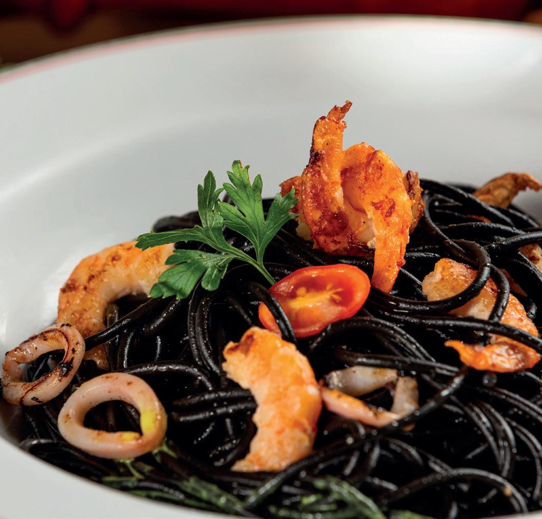 (Opção 2) Arroz Negro Al Mare (arroz negro com camarões e mexilhões).