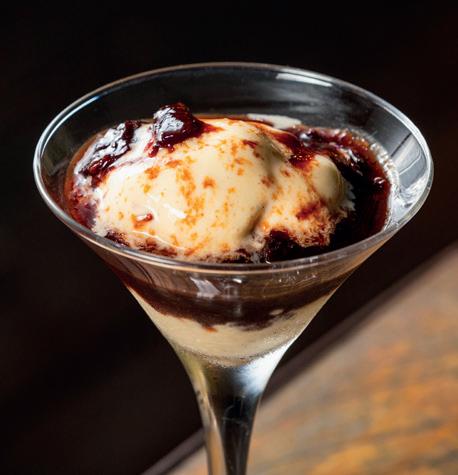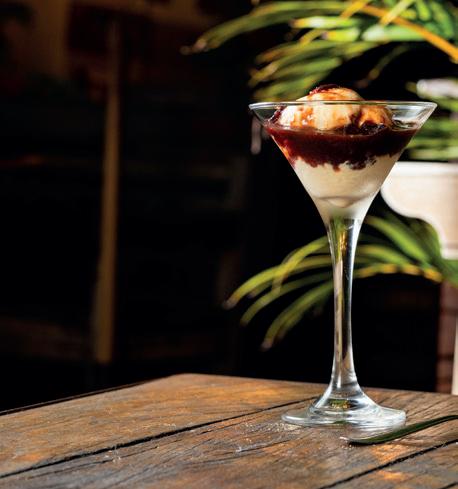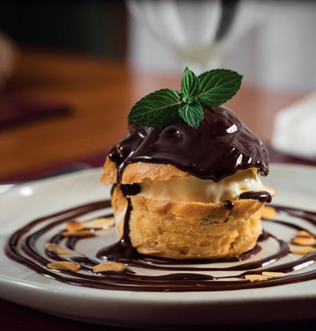 (Opção 2) Profiteroles (carolina com sorvete de amêndoas, ganache de chocolate meio amargo e menta).