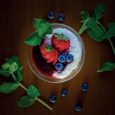 (Opção 1) Pana Cotta com Calda de Frutas Vermelhas.