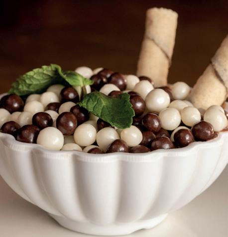 (Opção 1) Profiteroles (carolina com sorvete de amêndoas, ganache de chocolate meio amargo e menta).