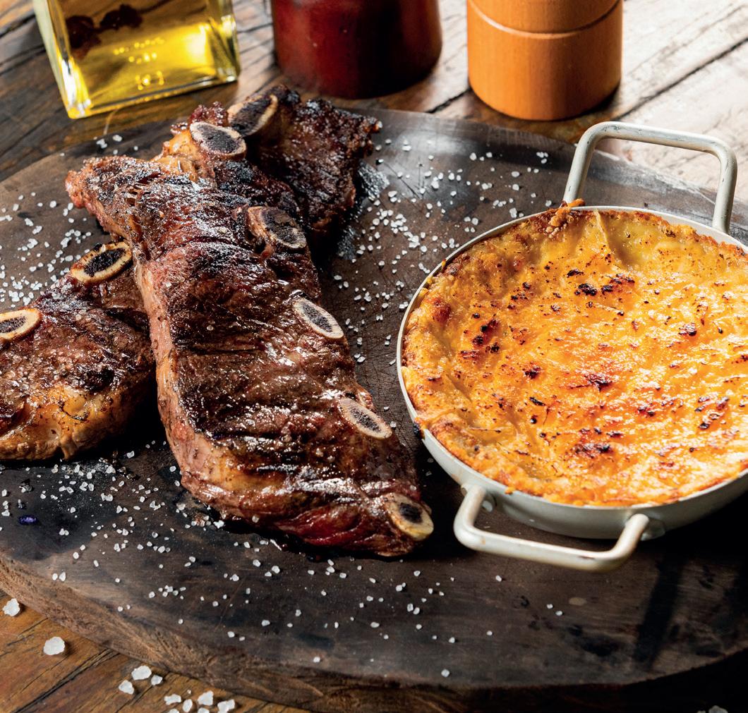 (Opção 1) Ragu de Costela (costela bovina cozida na pressão, farofa da casa e batata rústica).