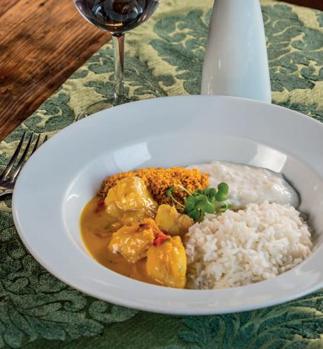 (Opção 2) Arroz de Pato (pato desfiado envolvido em arroz, com linguiça portuguesa e bacon, finalizado com salsinha e queijo, levemente apimentado – uma das opções principais nas mesas de festa dos portugueses).