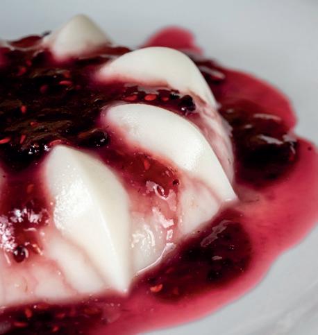 (Opção 1) Panna Cotta de Coco com Calda de Frutas Vermelhas.