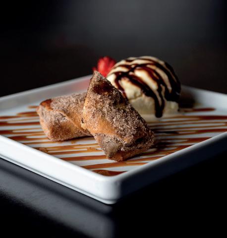 (Opção 1) Harumaki de Chocolate com Banana e Sorvete de Creme na Calda de Chocolate. (Opção 2) Ichigo (enrolado de goiabada com cream cheese, morango, creme de leite e leite condensado).