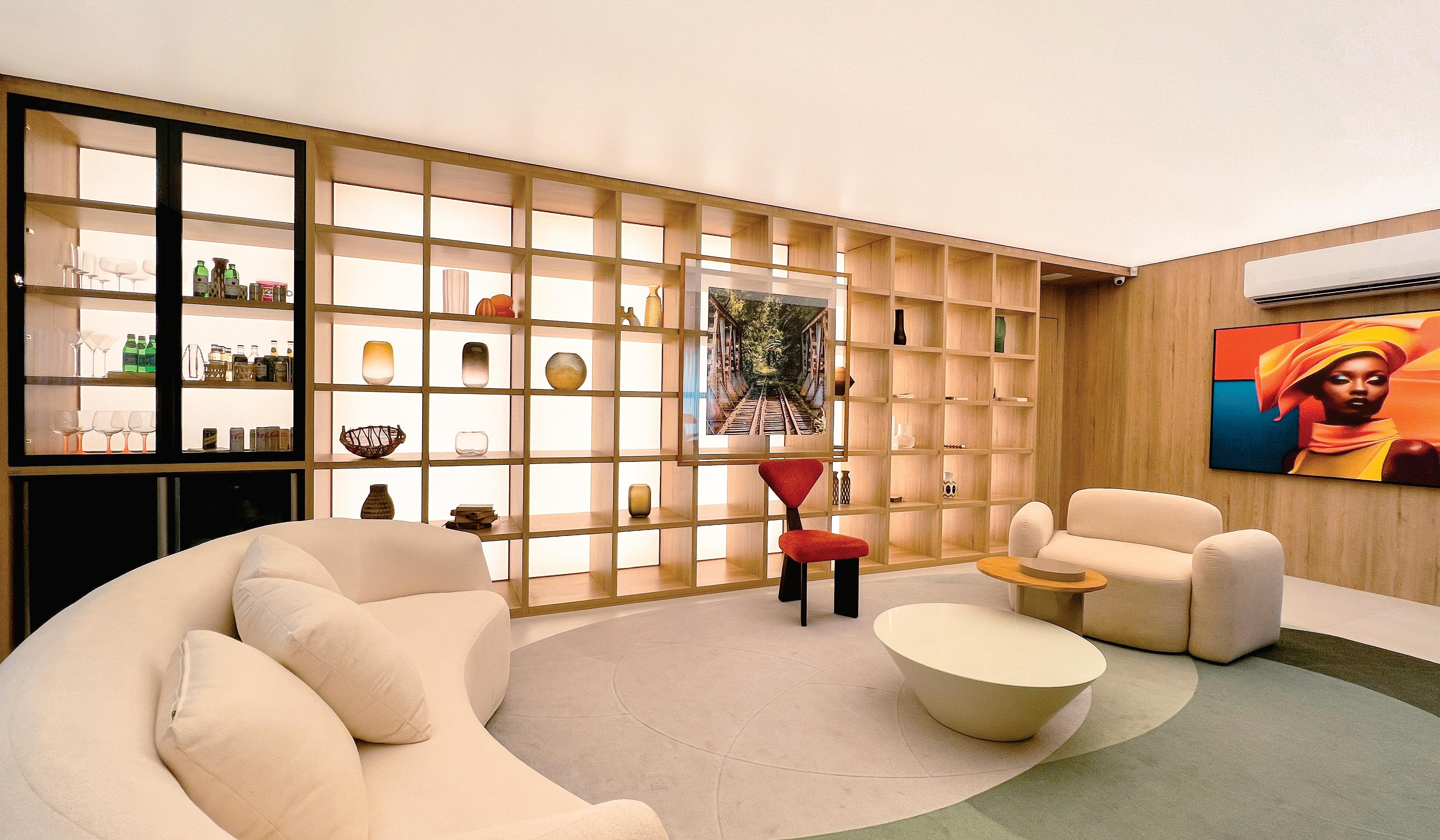 2. O mobiliário assinado reforça a identidade do projeto.