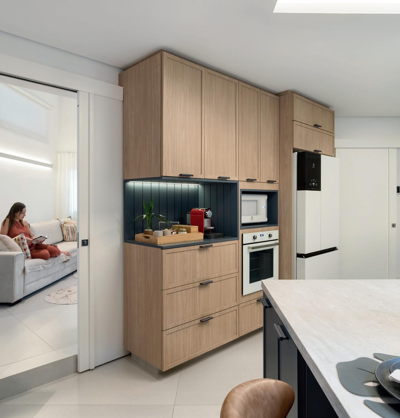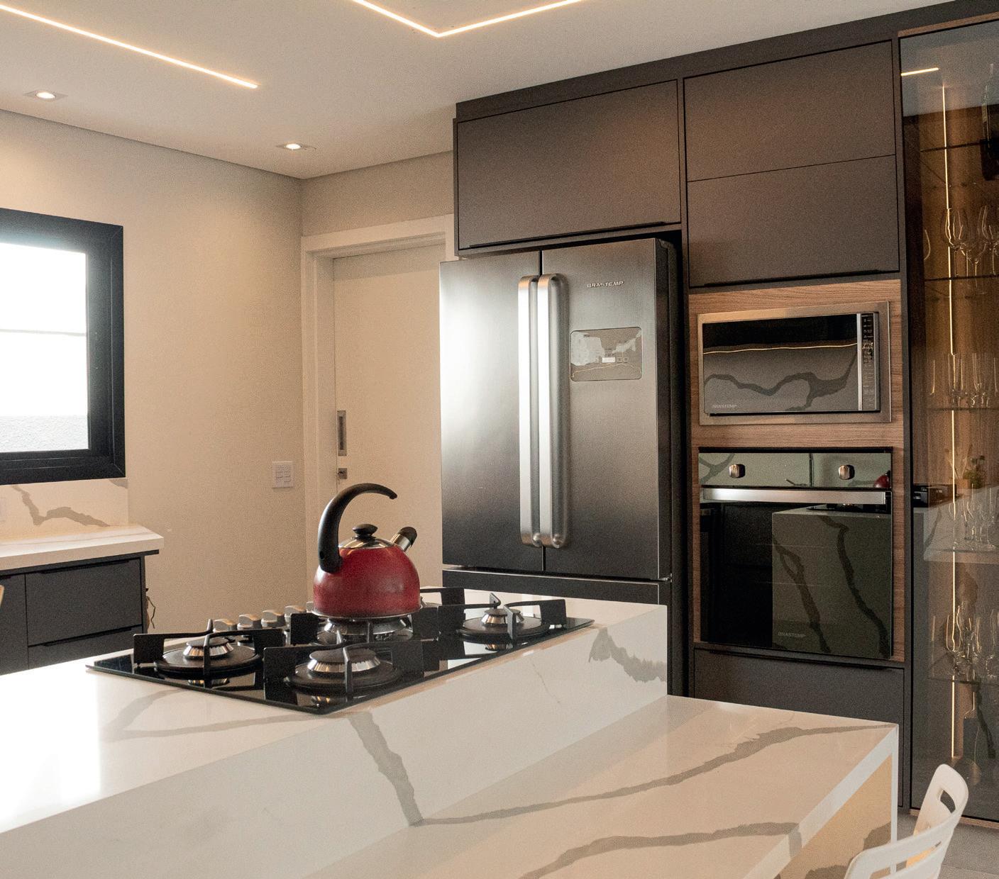 13. A paleta neutra mimetiza eletrodomésticos, marcenaria e mobiliário.
