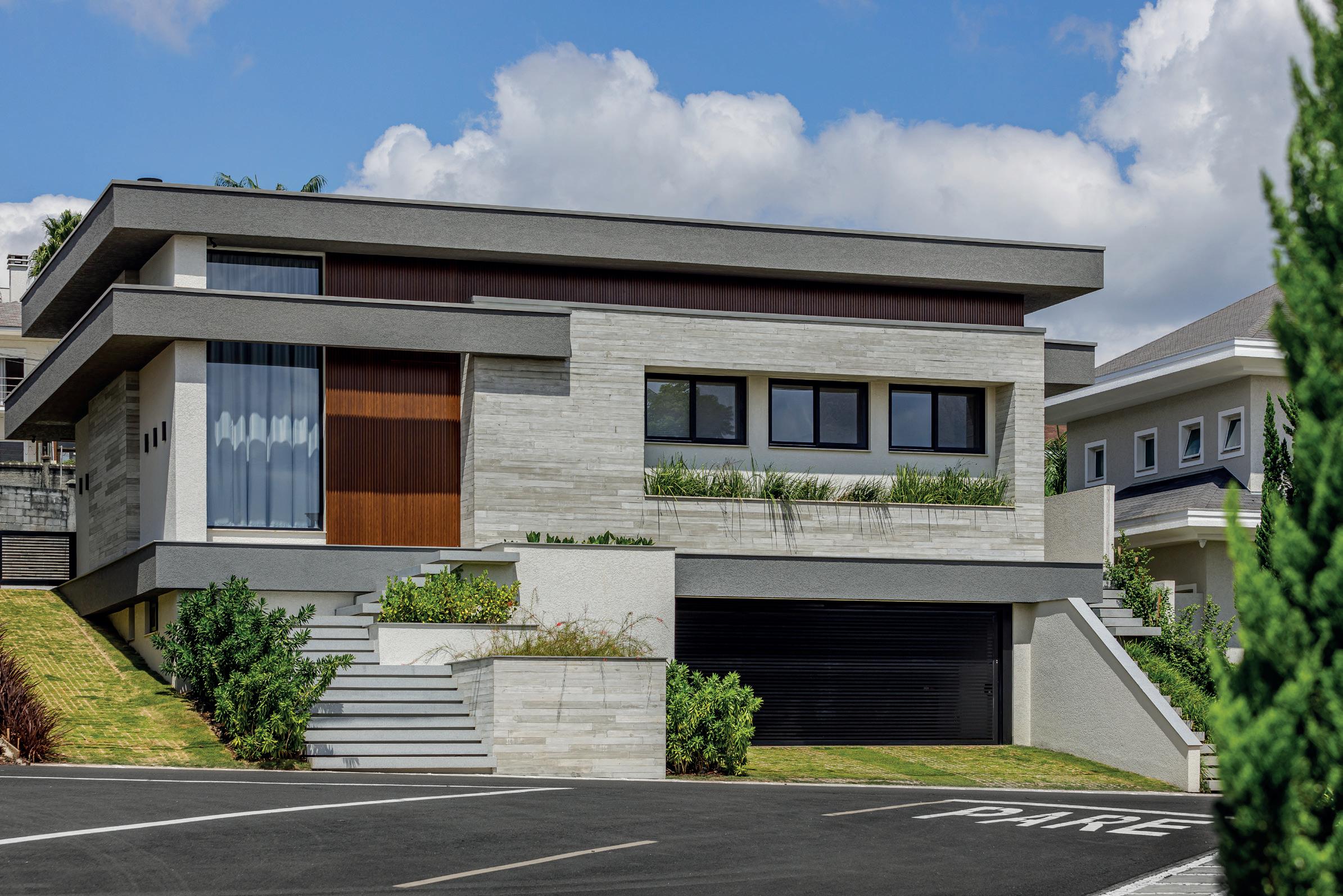 11. Os materiais e volumes proporcionam uma composição harmoniosa à casa contemporânea.