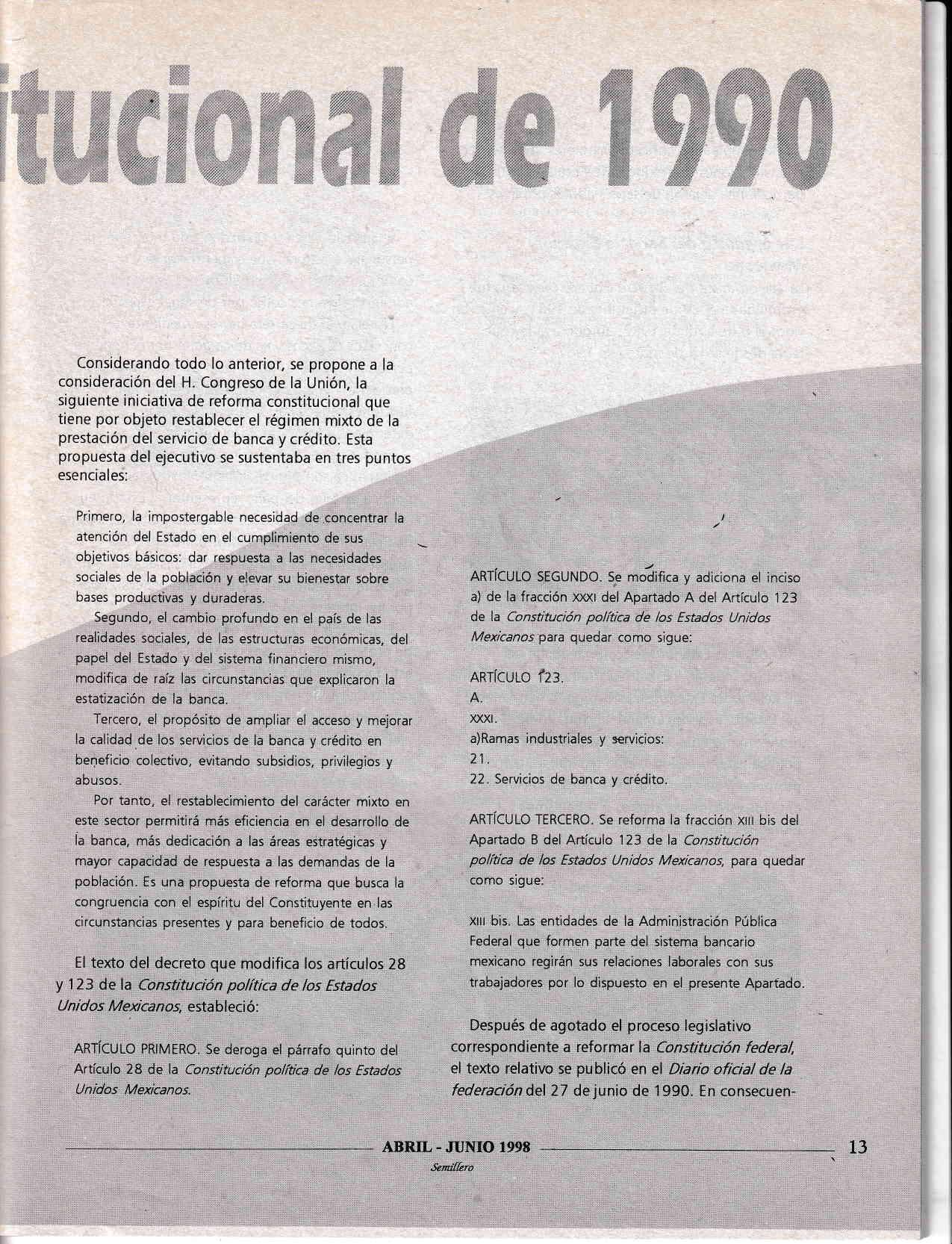 constitucionales, con el objeto de ampliar la participación de los sectores privados y social en la propiedad de las instituciones de banca múltiple. La exposición de motivos de esta iniciativa expresaba, entre otras ideas, que para fortalecer