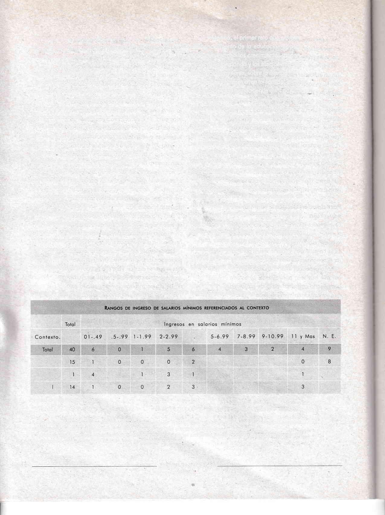 Sobre el ingreso fomilior, se liene que lo moyorío de los fomilios de iornoleros sobreviven con un solorio que vo de uno o 3.5 solorios mínimos, esto es sumondo todos los ingresos de los miembros de lo fomilios. Hoy un pequeño porcentoie que no llego ni ol mínimo y otro que rebosq |os 7.5 solorios mínimos. Tomondo en cuento que los fomilios tienen 4.ó miembros como promedio y que los precios de los productos y sotisfoctores en lo región son sumomenle oltos, resulto difícil pensor que con esos niveles de ingreso uno fomilio puedo vivir de monero decoroso.
