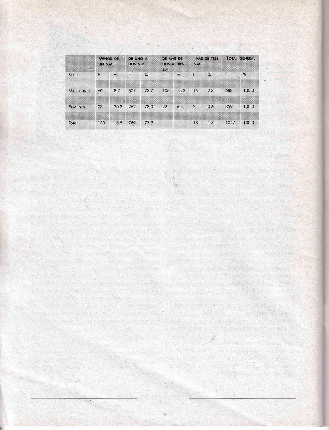 Cuondo onolizomos el ingreso por sexo/ encontromos que en el coso de los troboiodores que gonobon menos del solorio mínimo, 20.3Yo correspondió o los muieres contro B.7Yo de los vorones, oquí se presentó uno diferencio notoble; en el rongo de un solorio mínímo o menos de dos, se liene 73.0% poro los muieres y 73.7o/o poro los hombres, oquílo diferencio {ue mínimo; donde comenzoron o despegorse fue en los ingresos mós cltos, en el rongo de hosto tres solorios, 15.3Yo correspondió o los vorones mientros que o los muieres 6.1o/o; oquí lo diferencio fue notoble, exociomente el doble; y por último, en el rongo de mós de ires solorios lo diferencio se montiene,2.3%le corresponde o los hombres mientros que .60/o o los muieres.